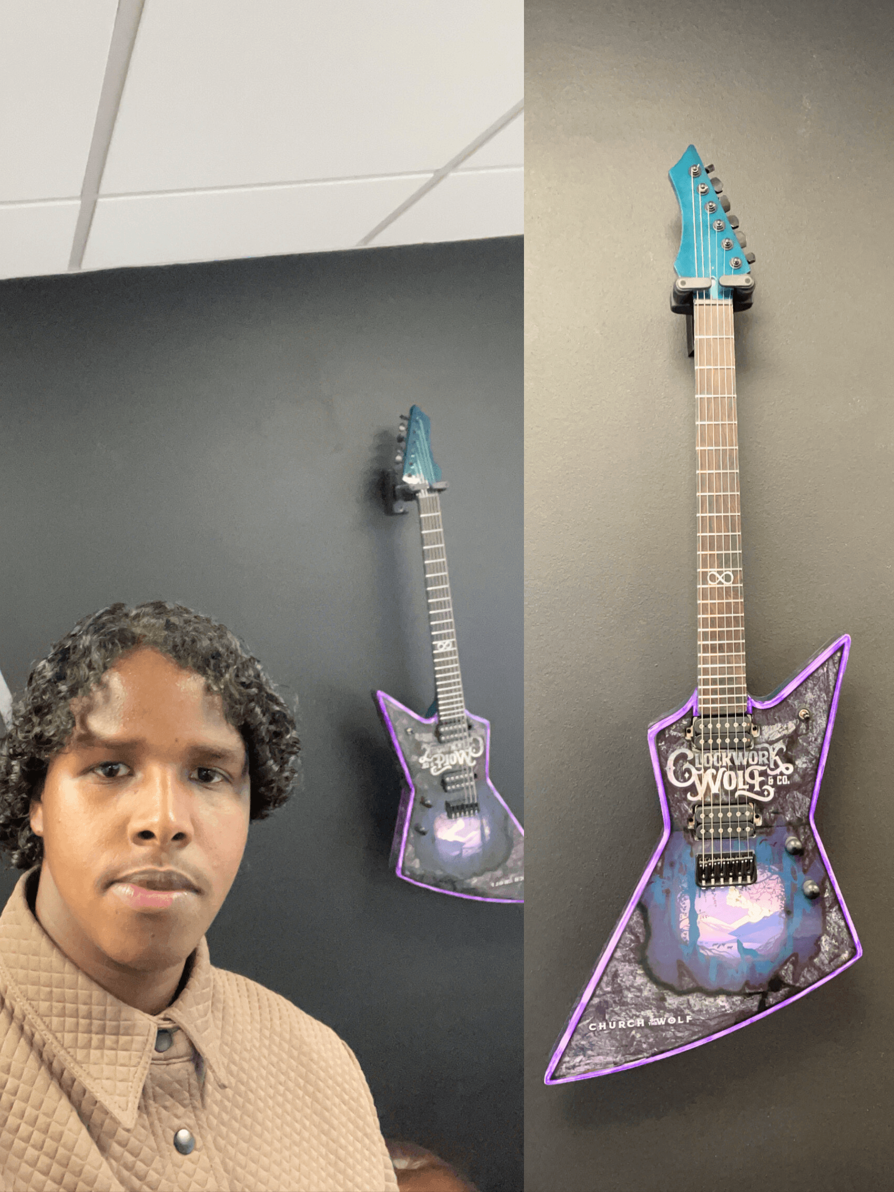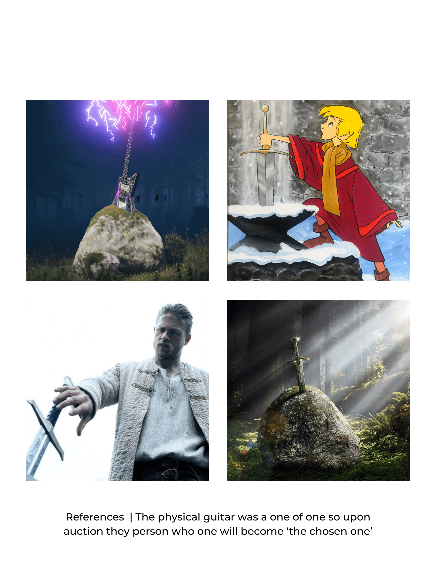 Working on this custom guitar for Rob Chapman was super fun! From strategy to design this project was a great leap into better understanding marketing through scarcity and smart contracts on the blockchain. The 3D desgin for this 1/1 Guitar auction was inspired by the Disney film King Arthur where only one person has the power the lift the sword in this ocassion this was true for the new owner.