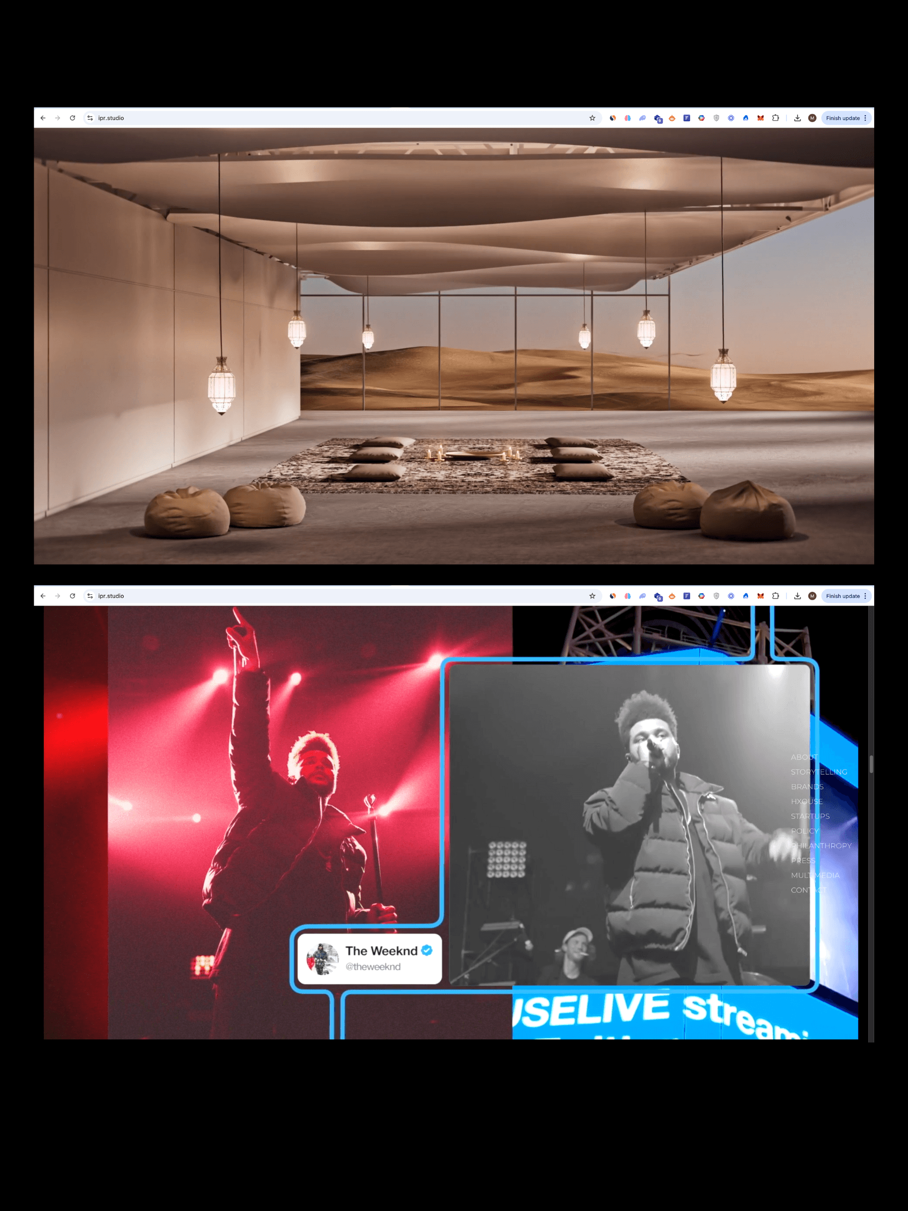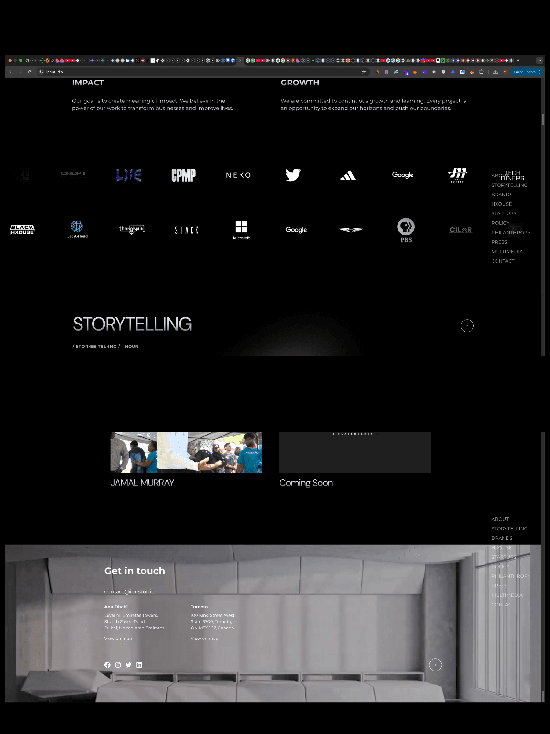 Working on IPR's website as they expand in the UAE was experience of transformation and attention to detail, working alongside talented VFX artist ACEODZ I designed an interactive visual landing page that morphed into the rest of the website curating a smooth user journey guiding the viewer through each section at a moderately slow pace ensuring they understand but also apperictae the work of IPR.