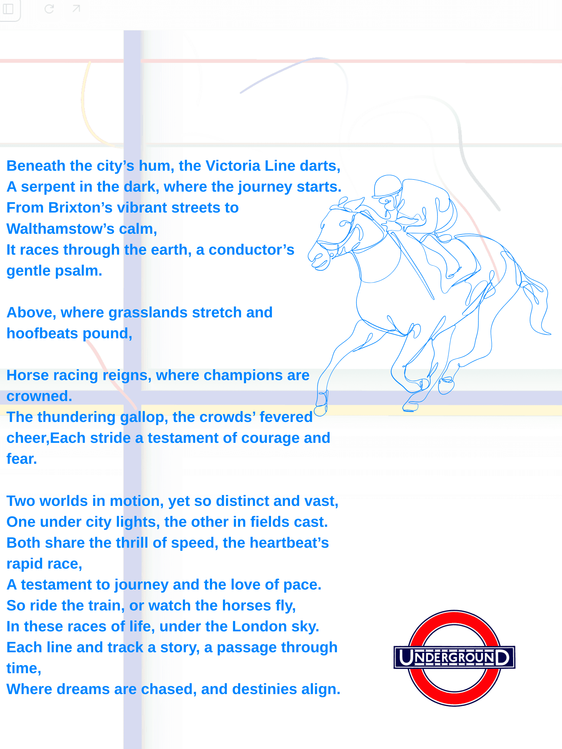 This art installation / Web experience I called (TFL) 'Travel Further Liminally' was inspired by daily commutes on the London underground and one day ending up at Edgware Rd station when I was in awe of the large wall installation by Jacqueline Poncelet. It was at that moment I started coding using Replit on my iPhone which lead me to embark on a 3 week project in Touch Designer writing the code for an immersive digital experience I hope to share with daily commuters in partnership with Transport For London.